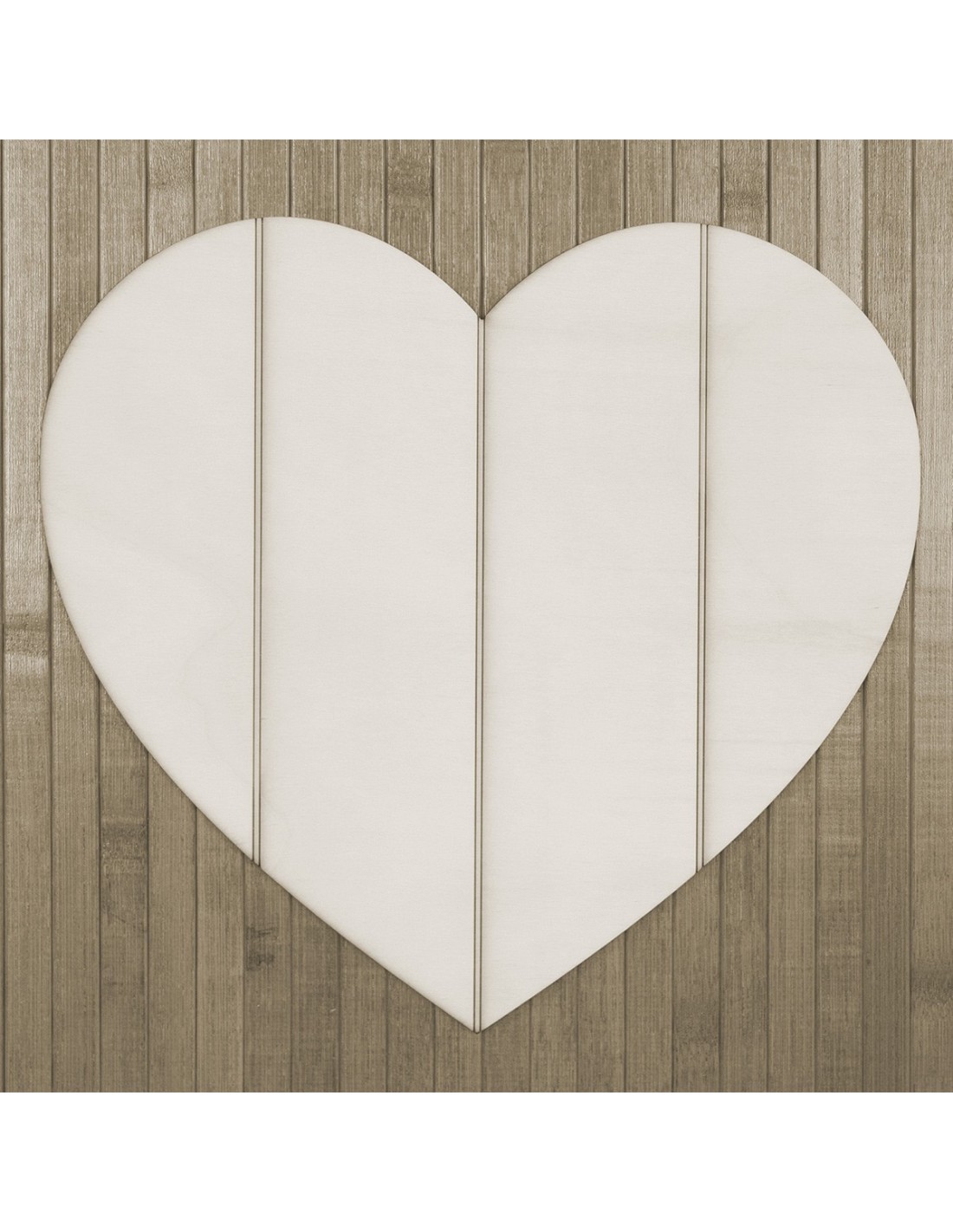 Silueta corazón listones, en madera de 30 x 30 cm color natural, corte al láser, para decorar con pintura o nuestros papeles de decoupage.