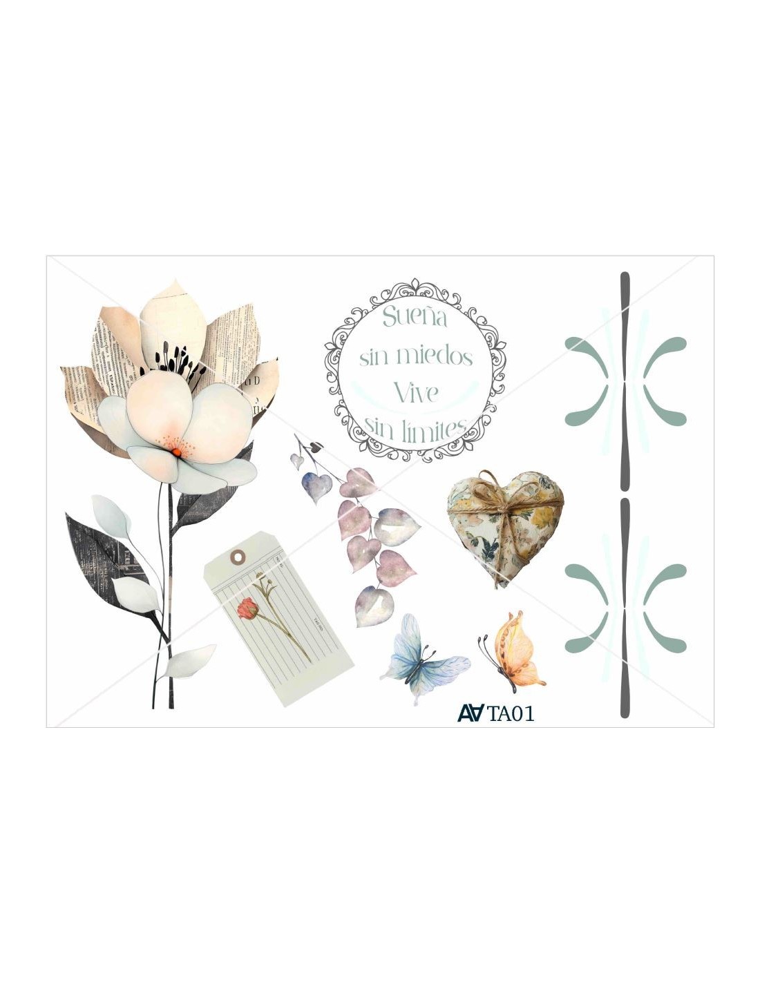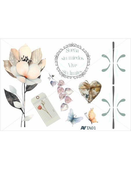 Transfers decorativos A4 (FOLIO) para aplicar sobre tela, madera, con ayuda de la plancha sin agua solo con calor. Proteger con papel vegetal y aplicar calor. Dejar enfriar antes de levantar, levantar plástico y comprobar que la imagen se ha adherido completamente. Si aun falta seguir aplicando calor.