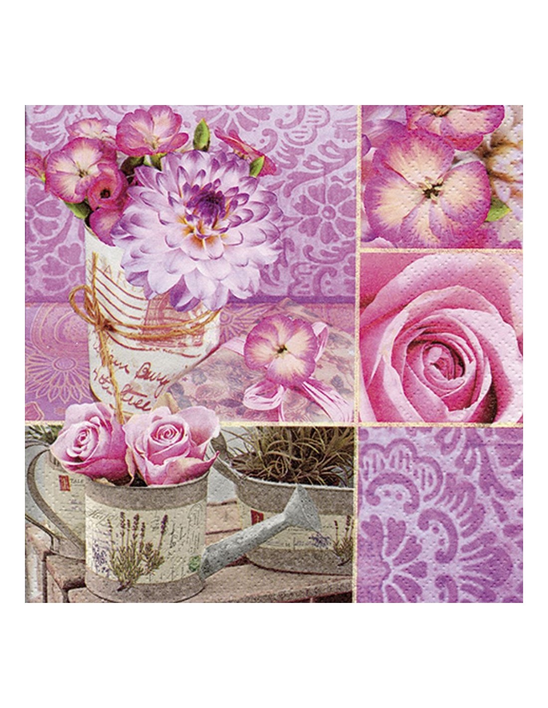 SERVILLETA 33X33CM ROSA FLORAL COLLAGE